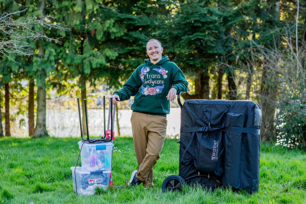my practice is mobile because i desire to make my offerings as accessible & compassionate as possible. many of my clients survive & thrive in the world with marginalized identities; their unique needs may make receiving bodycare in an office scary & pathologizing. i believe that by taking out the need for my client to face a highly-sensory society or deal with the complications of transportation; they will be more able to integrate the care we have co-created. one of the best parts of my practice is witnessing my clients staying cozy & safe in their home after a session that may evoke tender feelings.